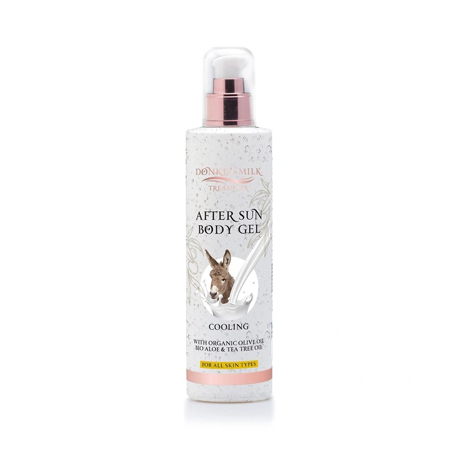 Представляем вам наш новый продукт - охлаждающий гель для тела после солнца с алоэ вера. Этот гель разработан специально для всех типов кожи и обладает уникальным составом, включающим 100% греческого ослиного молока, полученного с использованием передовых технологий криогенной обработки*, органического алоэ вера, масла чайного дерева и органического оливкового масла.